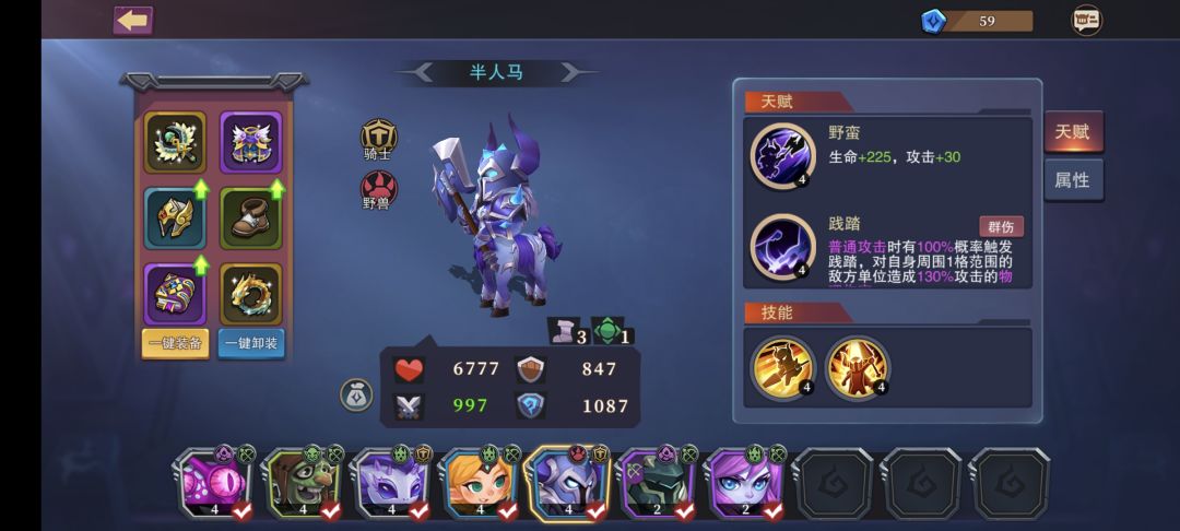 注:人马常规站位就沉底,抗6星刺客足矣同时也可以后入场,由大耳吸收闪避对面更多伤害