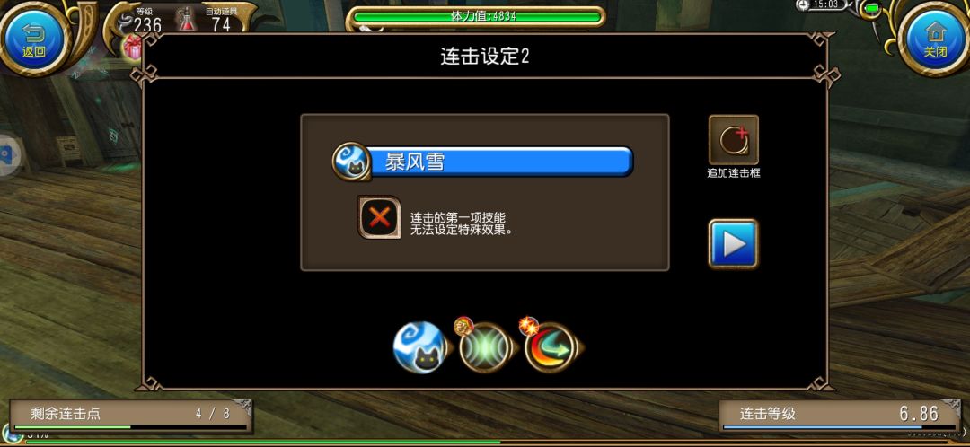 手法:开局单开三层神速后单开次破风 开勇气 再用1号连击 接着用2号连击 单用魔法使放出猫