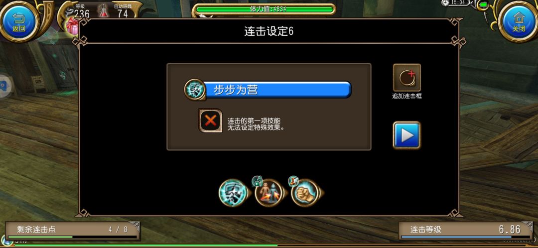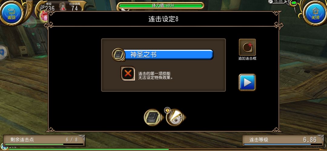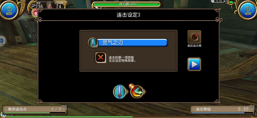 然后单放三次剑击 用5号连击 接着用6号连击 然后单放三次剑击和6号连击循环输出