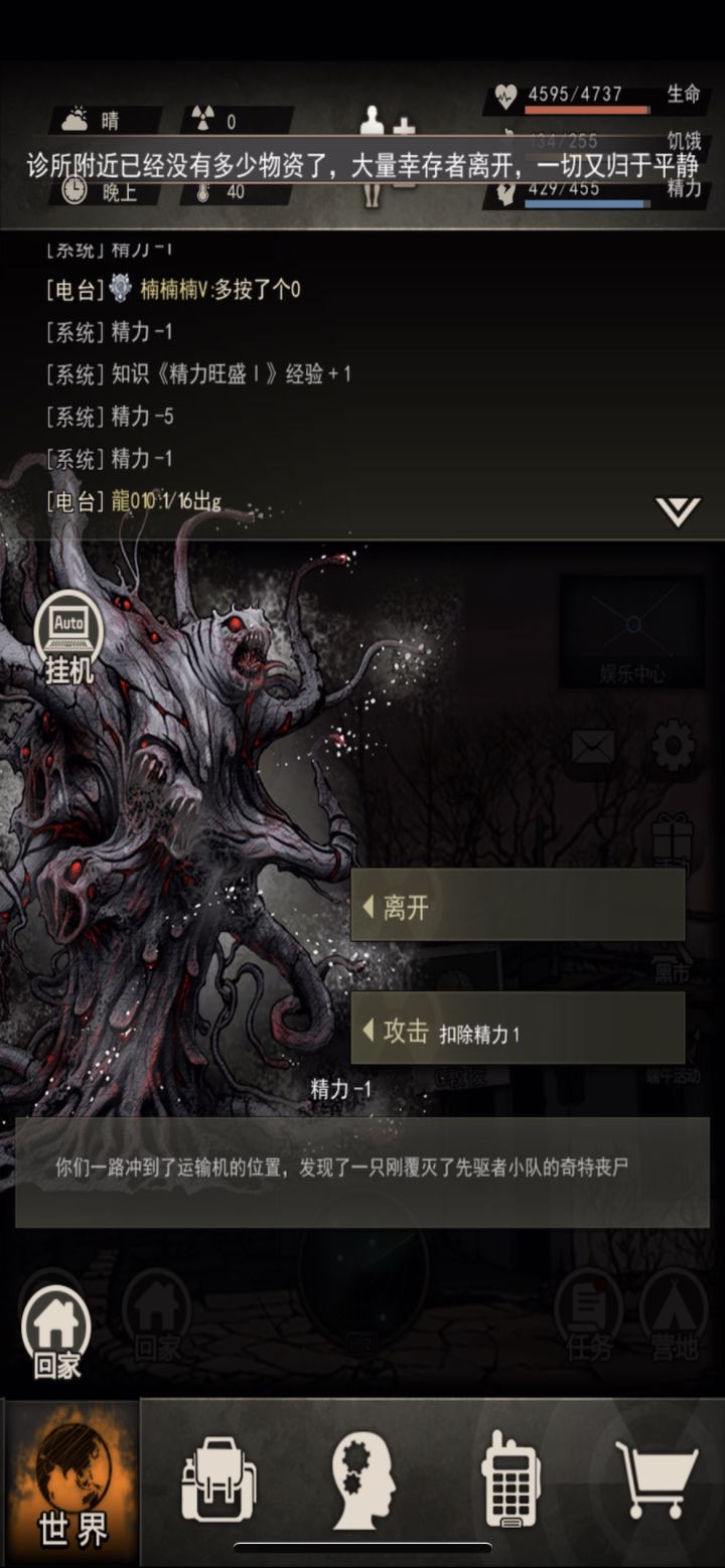 到停机坪后我们可以第一时间搬家到停机坪。接着搜索,发现跑道和修理区。直接往修理区打完骸骨犬、长臂丧尸和荆棘游荡者后搜索-带走电池-离开,然后选择往跑道-继续前进(不要往运输机,那边是无尽怪)-尝试-更换电池-启动。完成这些操作就会发现控制者,将其击败,和NPC对话就会解锁古铁NPC,心心念念的新武器装备材料就可以找他兑换了,还有活力强化。