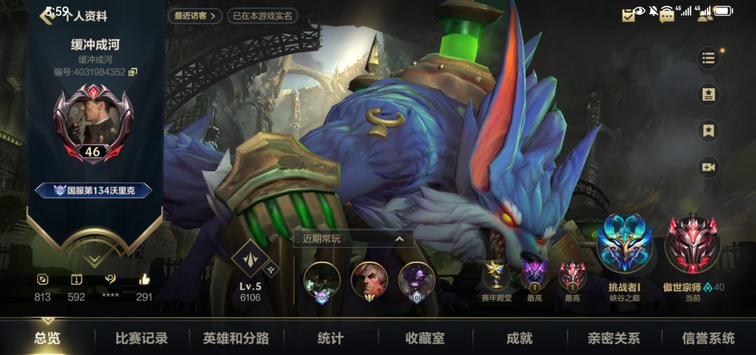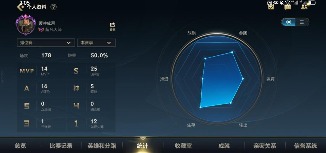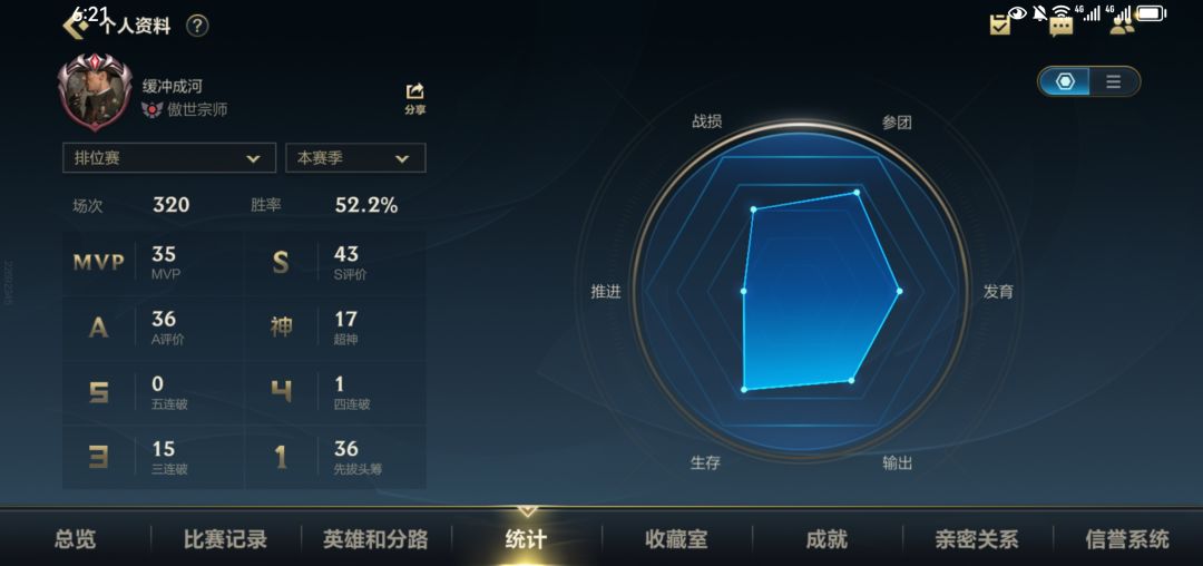 海克斯能量的存在,加上排位又可以五排之类的混钻,现在看胜率应该只有峡谷之巅才有点意义,因为即使我宗师后才开始打峡谷,峡谷也尽量会匹配段位加峡谷分相近的对手。