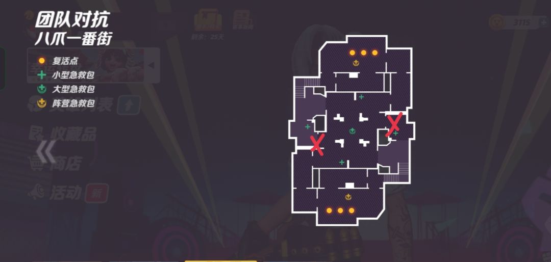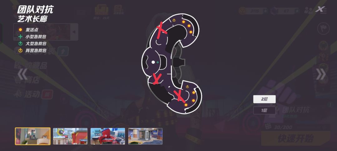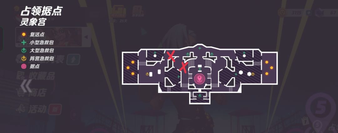 最后说几个比较能够发挥这个英雄优势的地图,各位新手也可以先打这几个地图找找手感,红色标注了位置点。