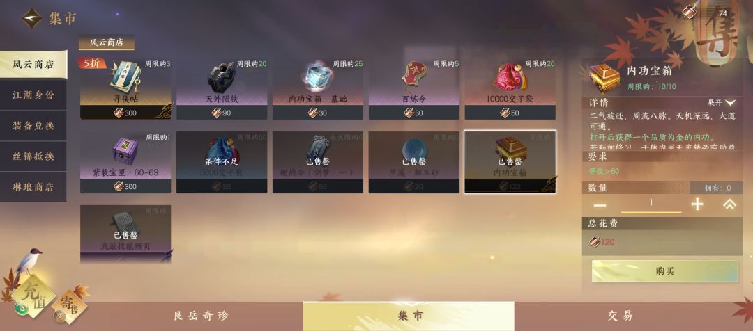 下一期会详细介绍金色内功和稀有金色内功。