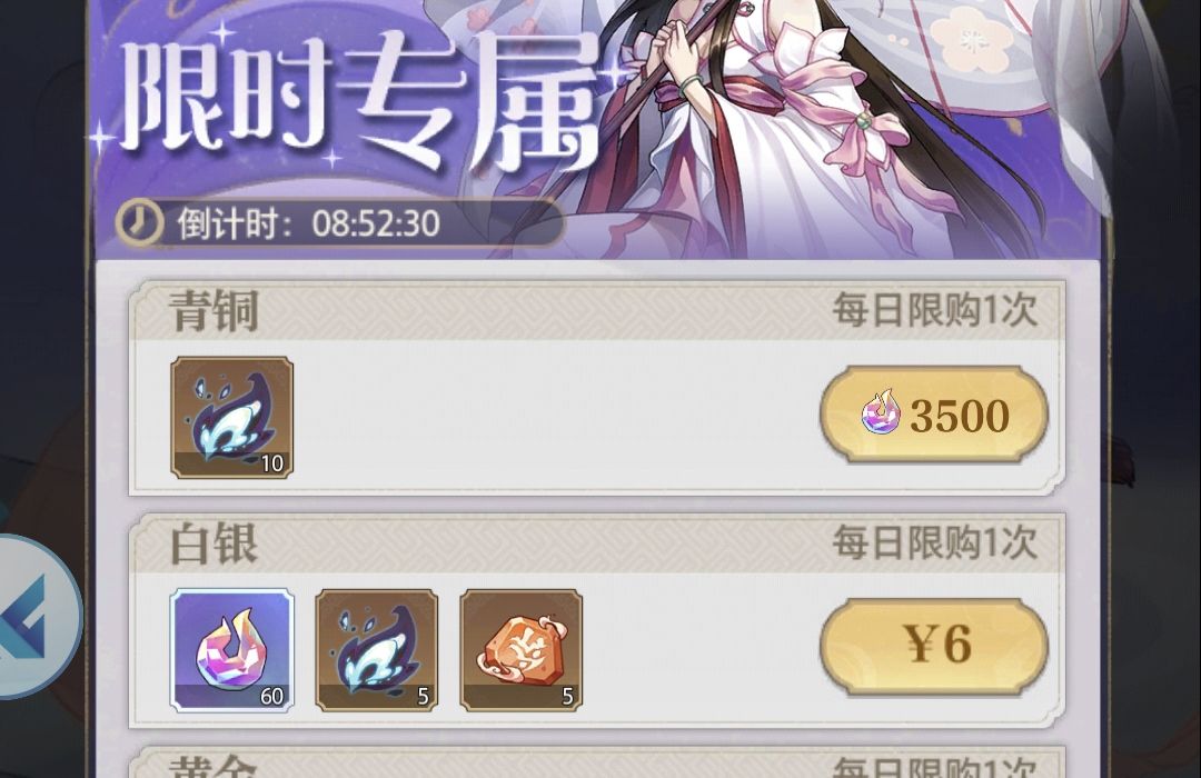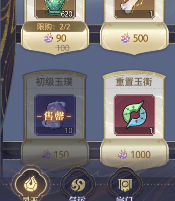 还有一个前期用不到的物资,但是前期不买,一个月后战力会差一大截,灵玉宝库里的初级玉,升级本命灵器 1-19 级需要 2000 个!且获取方法很少所以说每天都买满刷新也买