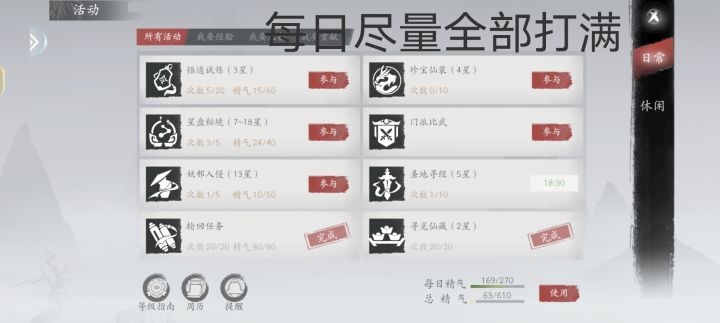 ①.达不到主线等级标准的真空期:在主线做完后,后续任务要一定等级之后才能解锁,一些新手包括我之前,挺容易在这个阶段迷失,不知道做些什么。推荐:轮回任务,任务简单,需要缴纳一些装备和灵食;悟道试炼,类似副本,打悟道可能会遇到惊喜和采摘悟道茶,惊喜是守护石碑,会掉落加大量经验的经验花,而采摘悟道茶可以领金票和银票;等到你不打了,要下号的时候,可以在野外找个野怪刷新点,打开挂机状态,直接退游戏就好了,然后等你挂机回来也能领到大量经验。