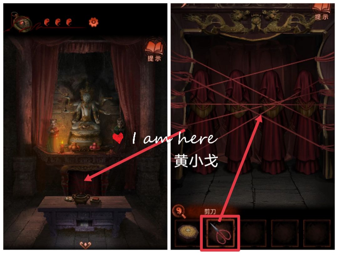 19.(佛堂)点击红线,用【剪刀】剪断红线