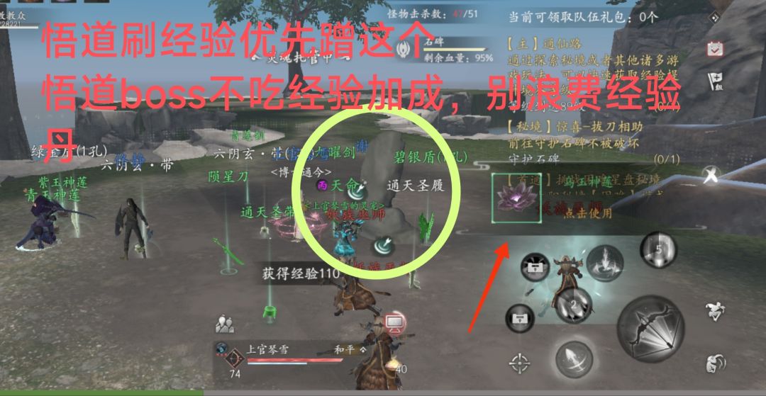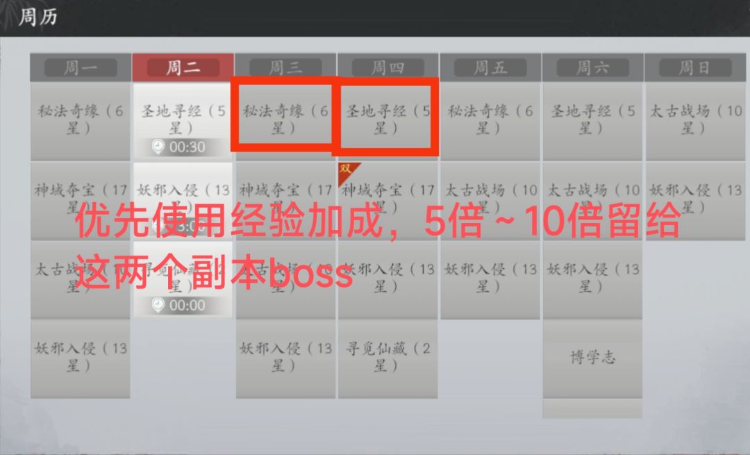 悟道的boss是不吃经验丹加成的,所有经验加成优先用在这两个副本的boss上,升级贼快,经验贼多,5倍10倍经验丹是有时效的1分钟内必须确保能打死boss才吃,不然纯浪费