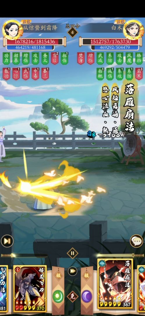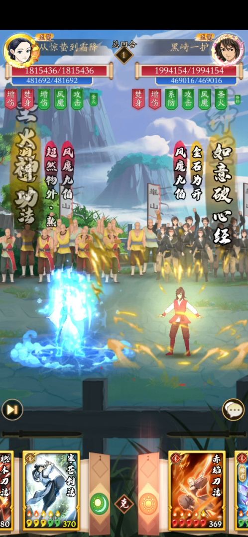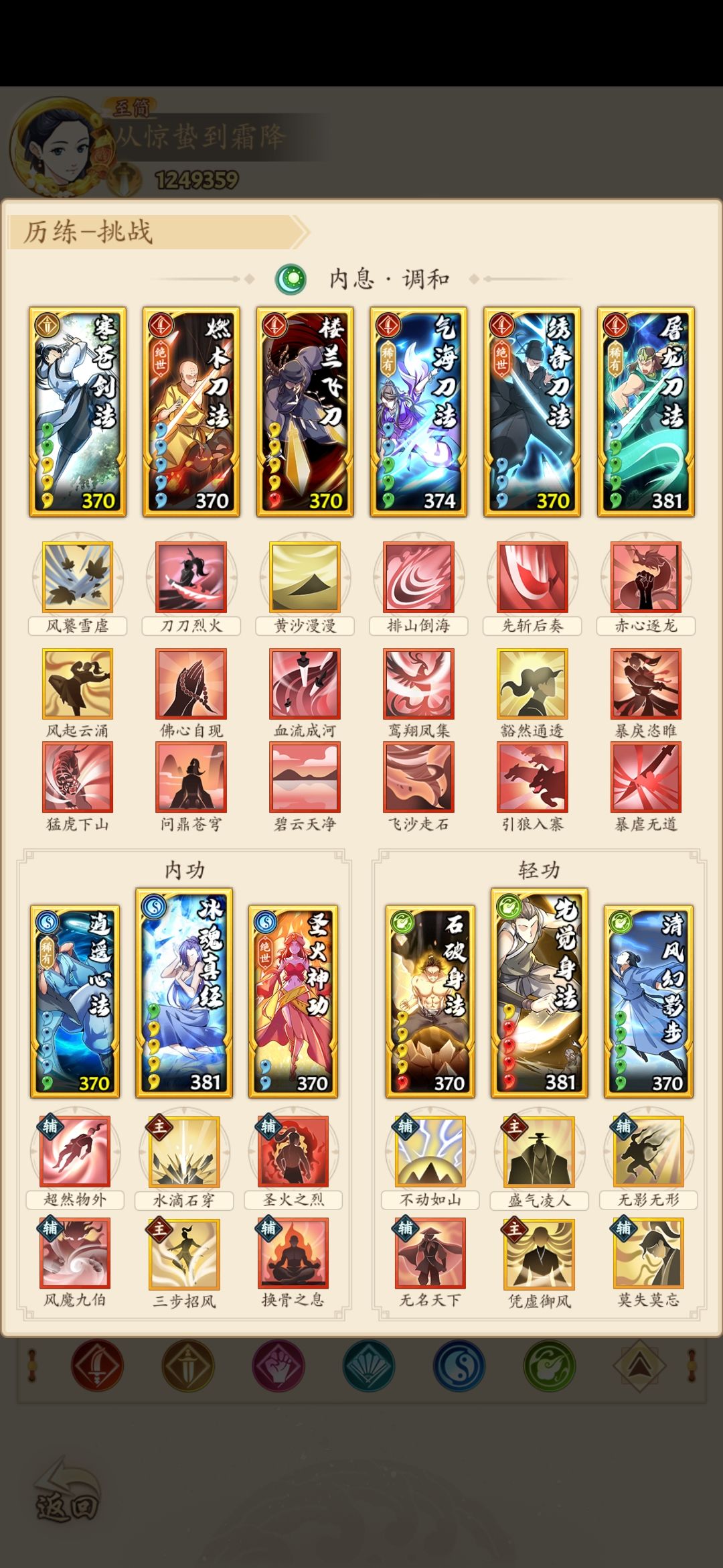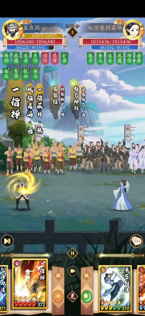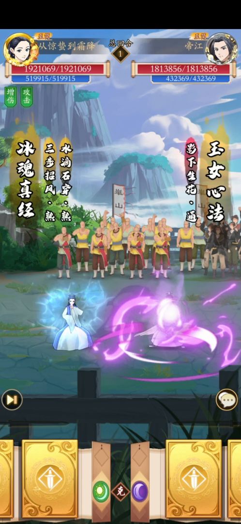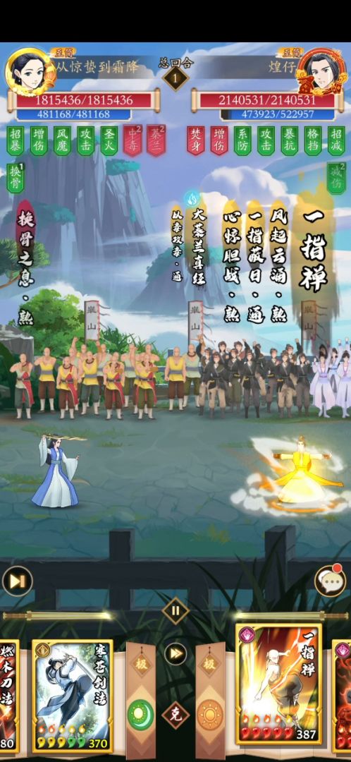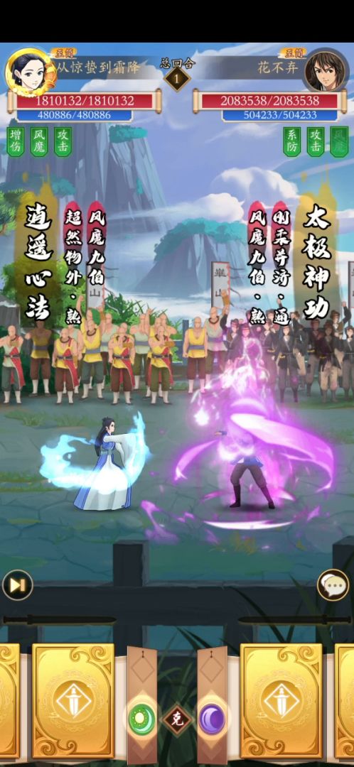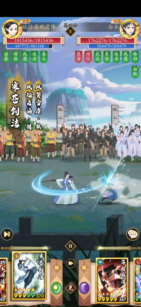 简单讲解一下,起手寒苍,寒苍是目前公认的第一普通绝学出手武学,很多人说它触发率低,这个确实,但是同样的,触发率低代表着它触发后的高收益,并且可以带上风起云涌提速以及猛虎下山压制对方起手的出手和后手。