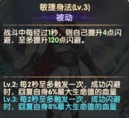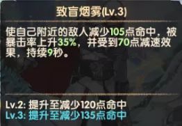 增加闪避,至多120点闪避,并且附带回血效果配合烟雾弹,反击,对物理敌人很克制。