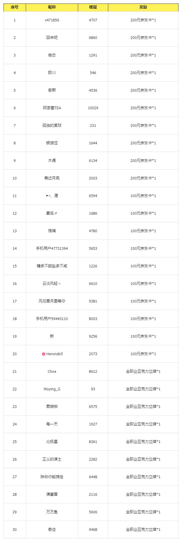 回复层数达到200楼时,将随机抽取10位冒险者送出【100元京东卡*1】