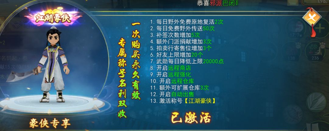 下面就给大家说一下这个新手入门的,怎么样才能玩的舒服,(此攻略只适合微氪或者氪金玩家)。大家进入游戏以后可以先熟悉熟悉游戏,然后就是一个新手288套餐!1、首先就是侠名,这个东西我在这里不多做介绍了,大家想了解可以在游戏内看一看,或者看一看下方图片。(68)