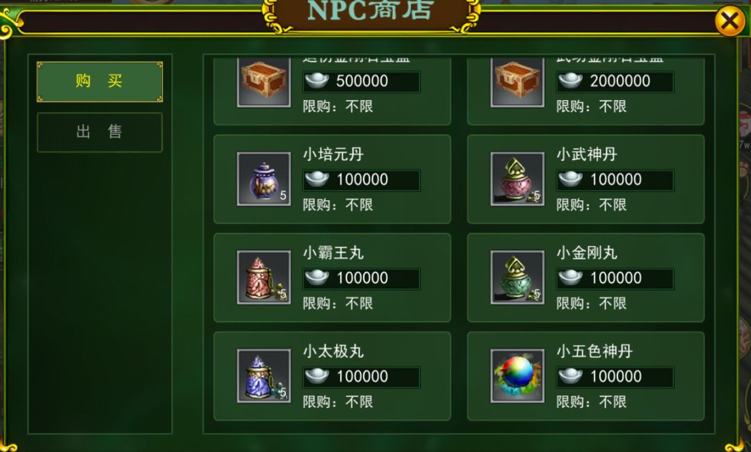 1、首先就是辅助类道具:1.3倍经验丹,无极金尊符,至尊无极金尊符,小培元丹,小五色丹,小霸王丸,小太极丸等等!以上的这些都是辅助类药品,有增加经验的没有提升攻击的,有增加血量的,大家可以根据自己的需求,到npc金香玉那里购买!