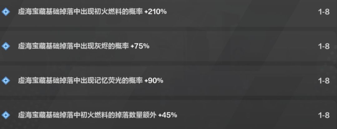 毫无疑问初火燃料概率升阶是必备的。在假设我们已经有了一条蓝色初火燃料12%升阶的情况下,这四条的收益占比(假设均为蓝色词条):