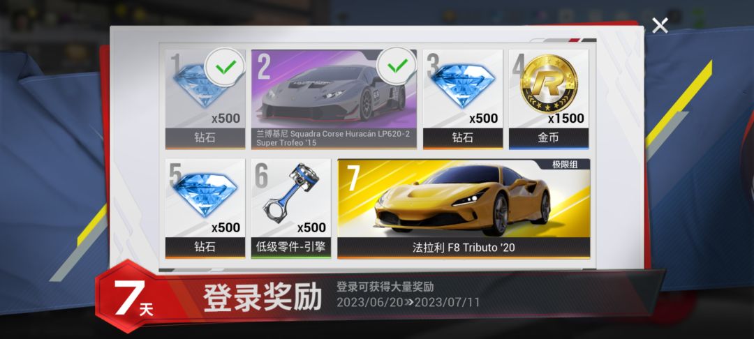 新人每日签到第七天可以获得金车!