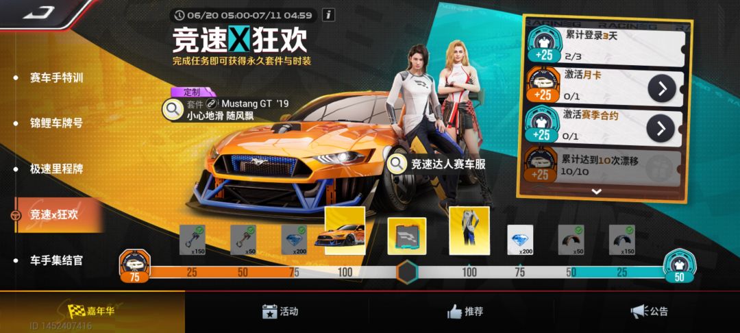 竞速狂欢完成任务可以获得免费金车!
