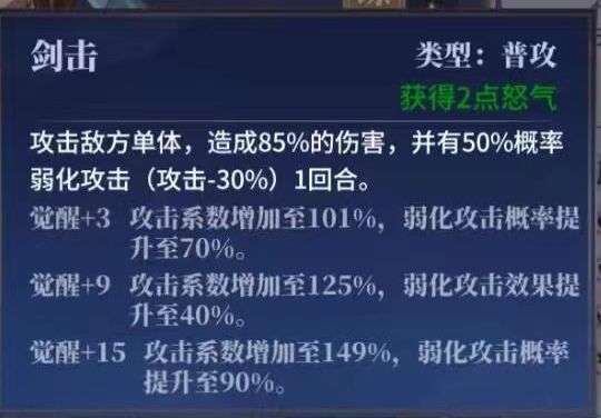 普攻:攻击系数略低于其他灵将,大概率添加弱化防御buff。