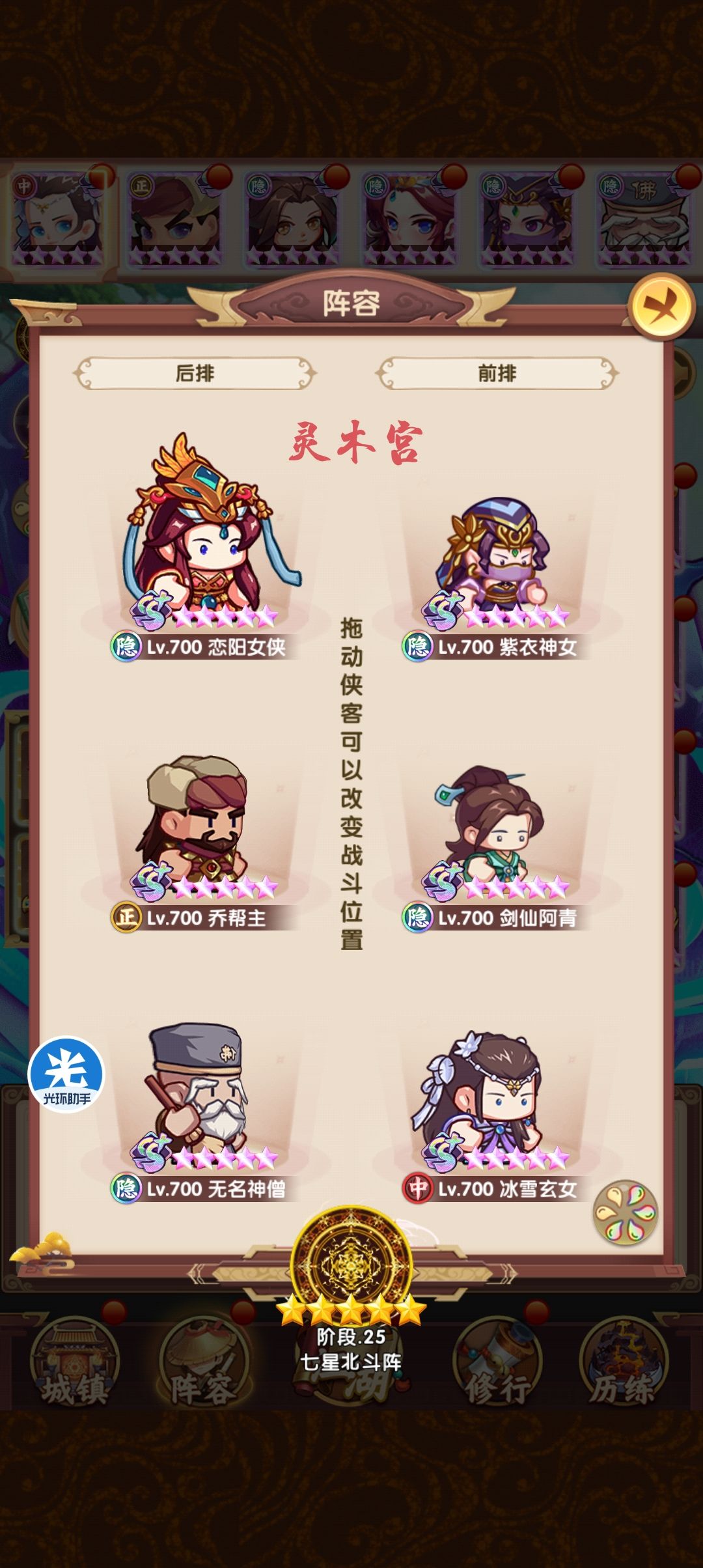 敌方三怒不选,乔帮主武当,其他然山,确保剑圣堆攻击超过扫地去抵挡怪兽攻击!其他思路和灵木宫类似。