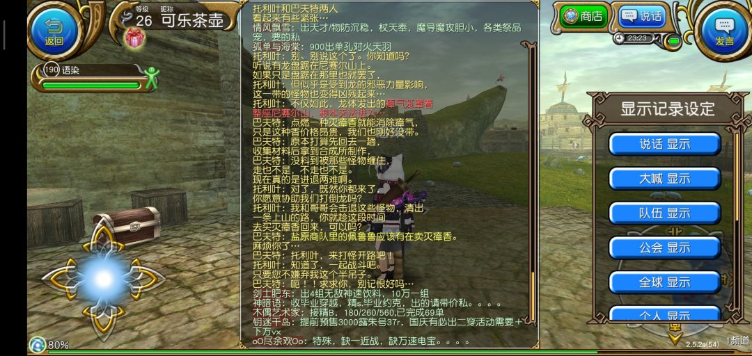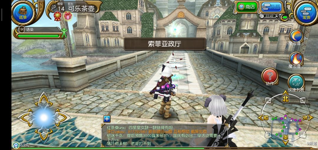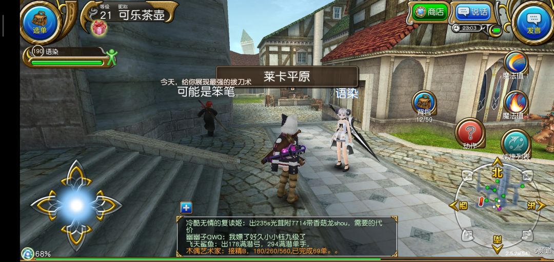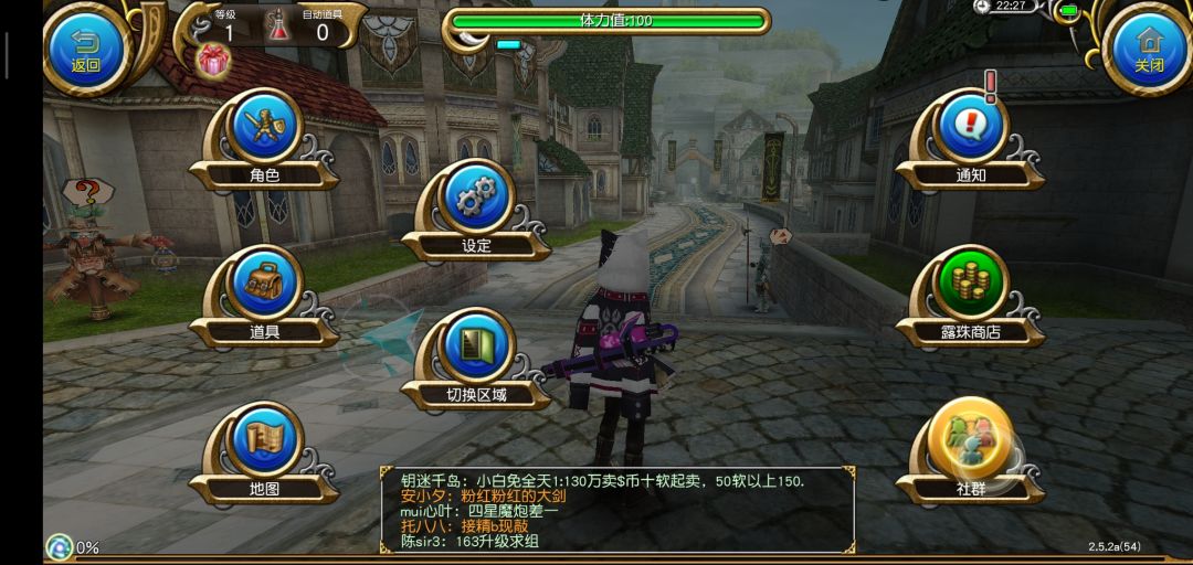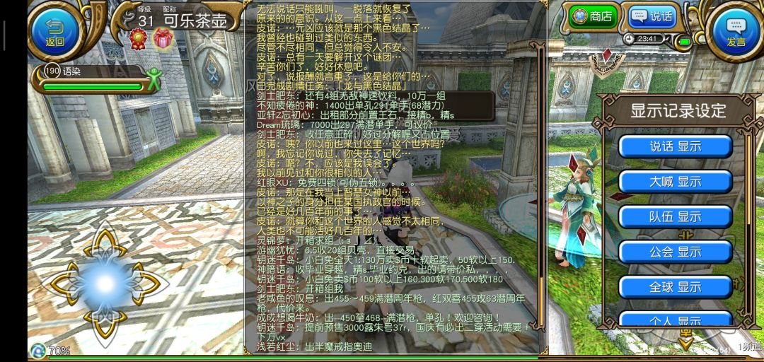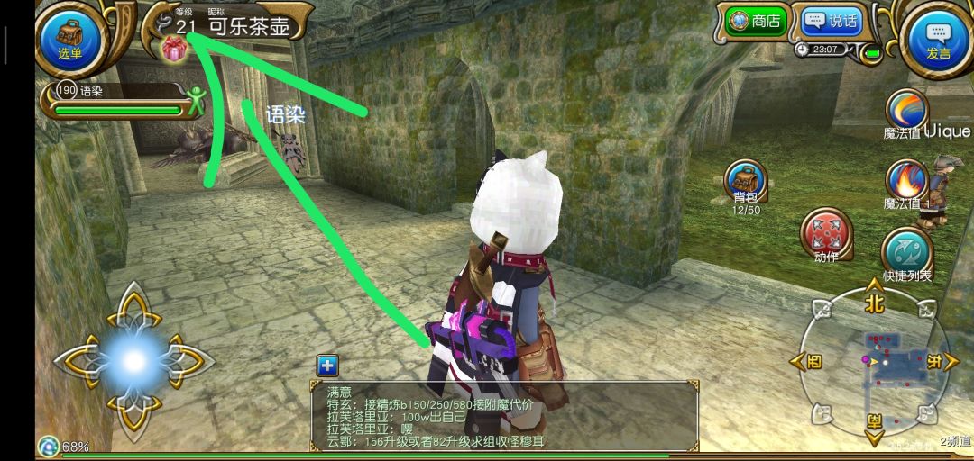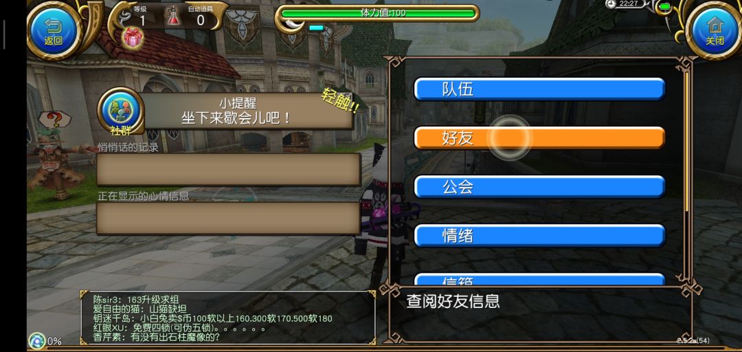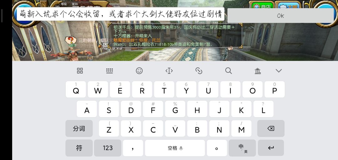 结束新手教程以后进入繁华的索菲亚,我们要做的第一件事当然是抱大腿啦!打开右上角发言,选择大喊,输入图中的话,一般都会有公会和大佬加你的。
