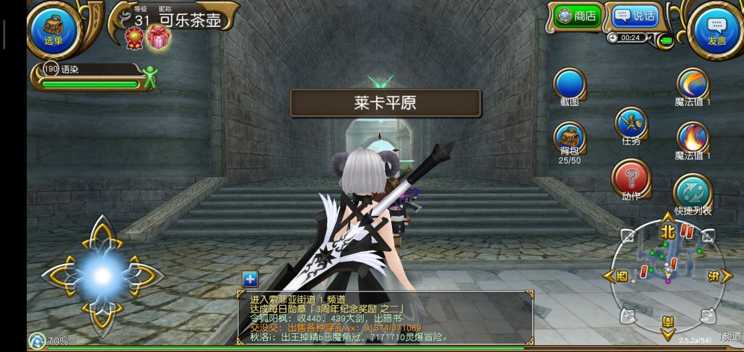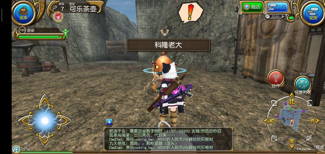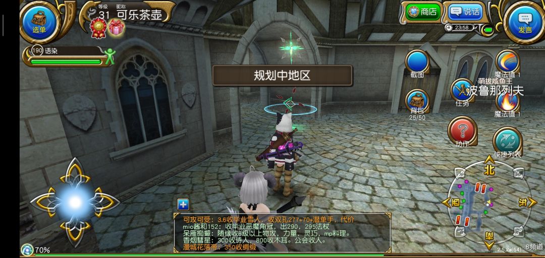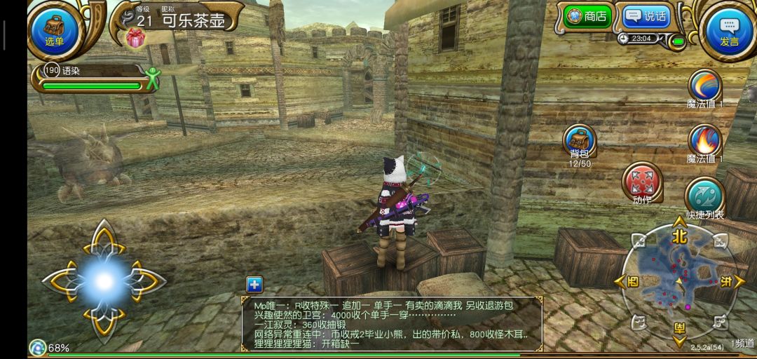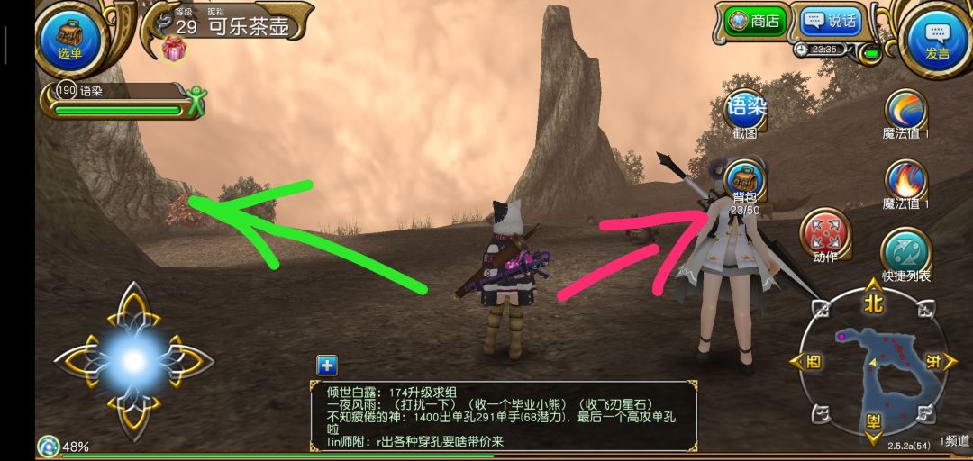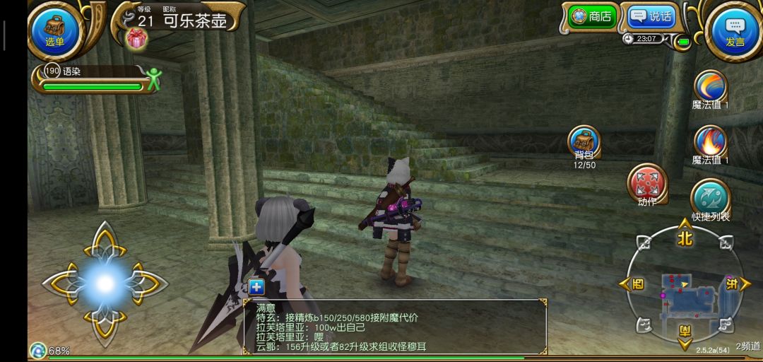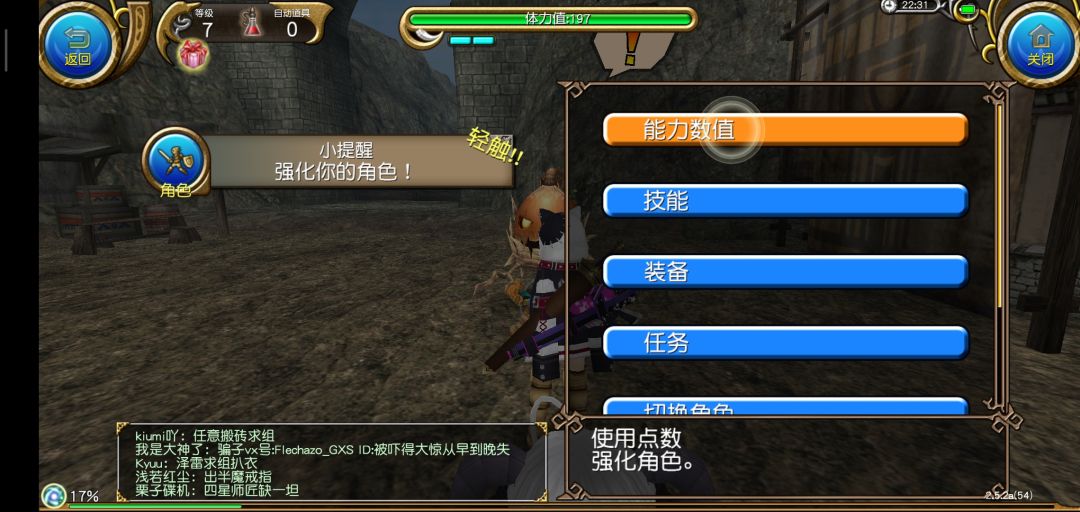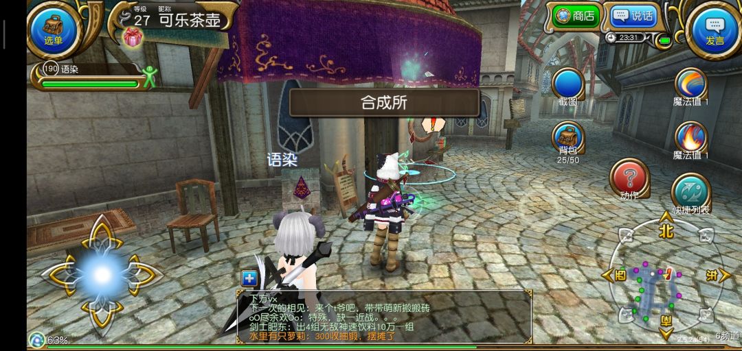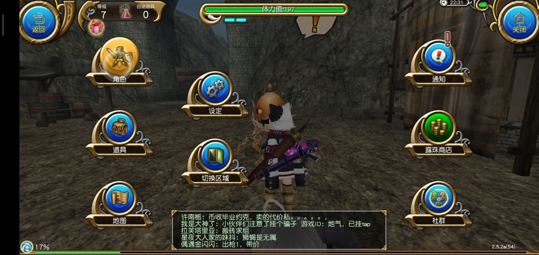 结束新手教程以后进入繁华的索菲亚,我们要做的第一件事当然是抱大腿啦!打开右上角发言,选择大喊,输入图中的话,一般都会有公会和大佬加你的。