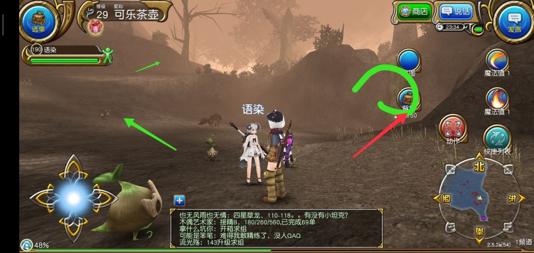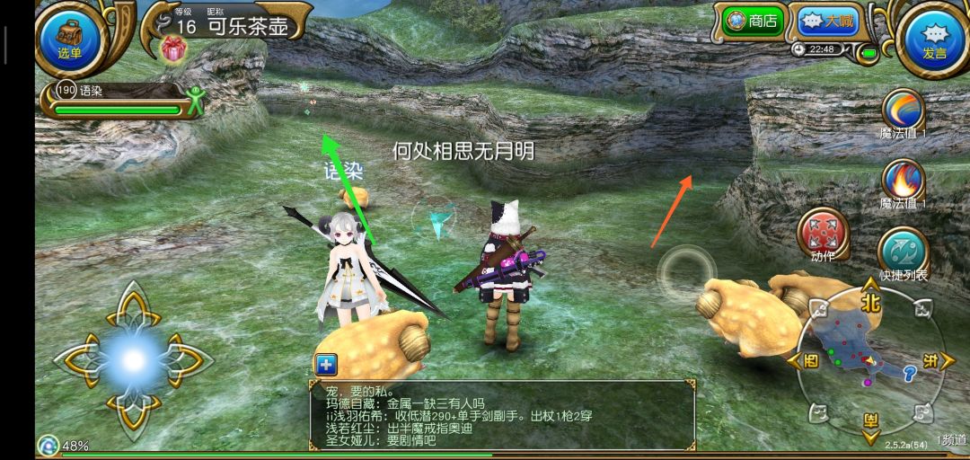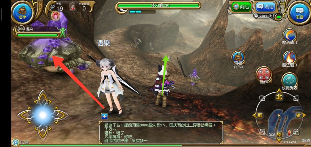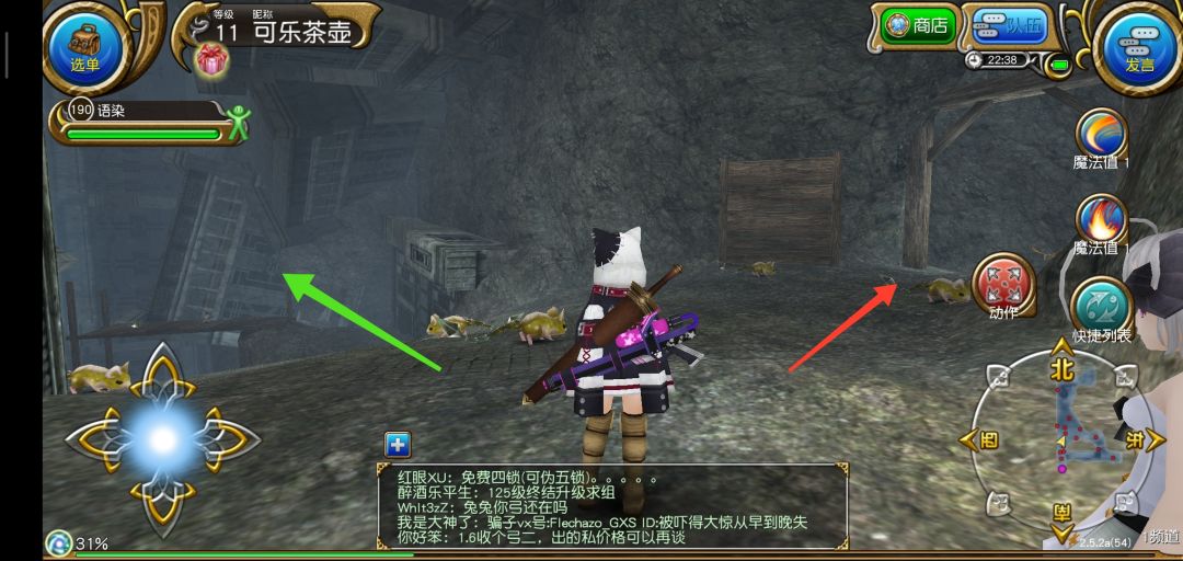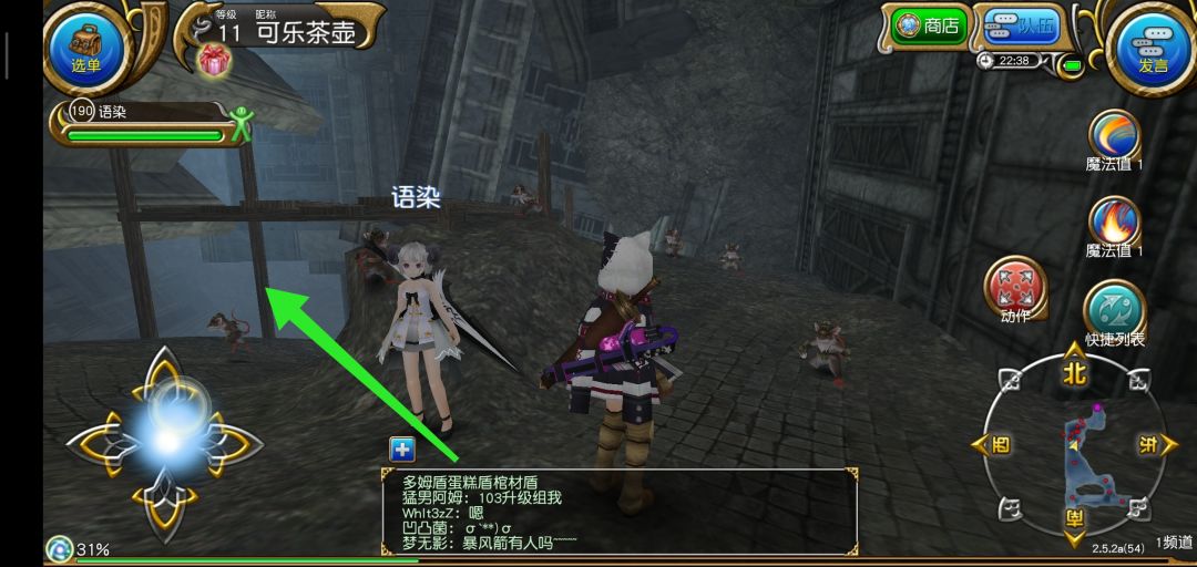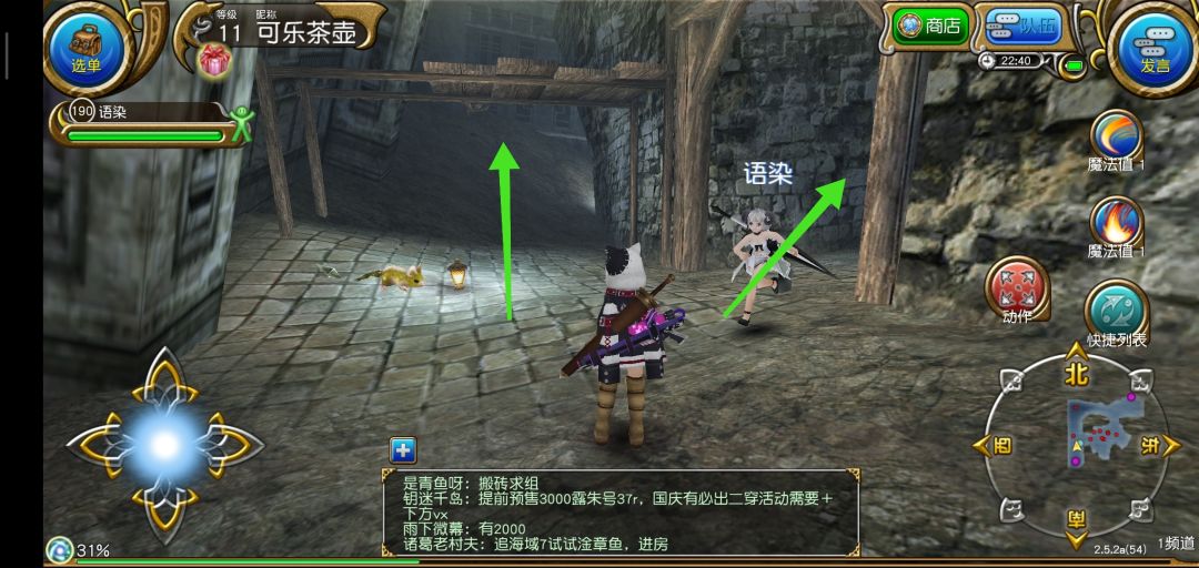 到达新地图后沿着图中所示右边绿色箭头走,上山,进入新图后遇到救人剧情(据说救的这只兔子是魔晶兽)