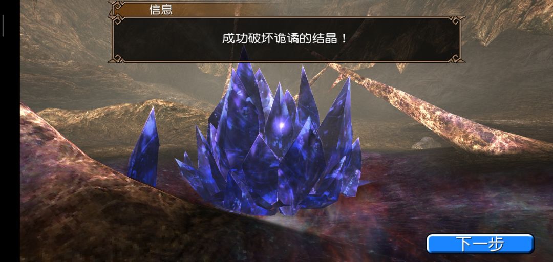 大剑佣兵一刀解决,然后选择出去。ps:这个我猜应该是柯尔连生体的结晶,这东西有污染生物侵蚀理智的作用,,原本这里是善良蛮龙的洞穴,被连生体污染了之后蛮龙失去理智离开了洞穴,才发生了主角经历的一系列蛮龙故事。这张图有个设计师的小恶意,他在传送点上面设计了一个平台,放着一个宝箱,从外面的图可以看到,但是从这里面却永远走不上去,因为上去平台道路在传送点之后,角色会被传送走,玩家永远无法拿到那个宝箱,算是一个小彩蛋吧,之前无聊旅游的时候发现的,有兴趣的可以找找看。