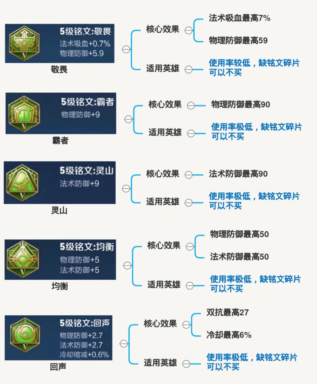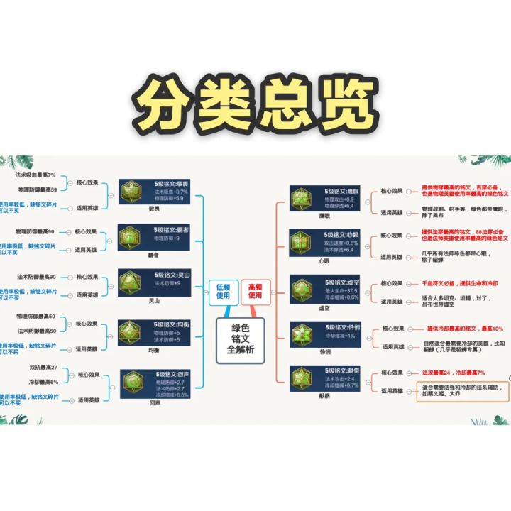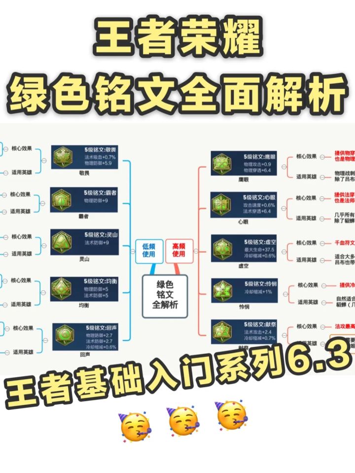 鉴于有些新玩家还没有集齐铭文,我把铭文按照【高频使用】和【低频使用】分类,优先收集高频使用的铭文;
