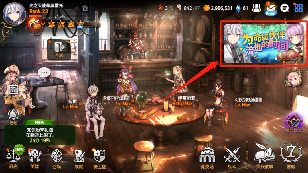 此外还有每日任务“亚卡的7天成长指南”和支线活动“为命运伙伴流逝的时间”,详情请在大厅右上方轮播图内查看。