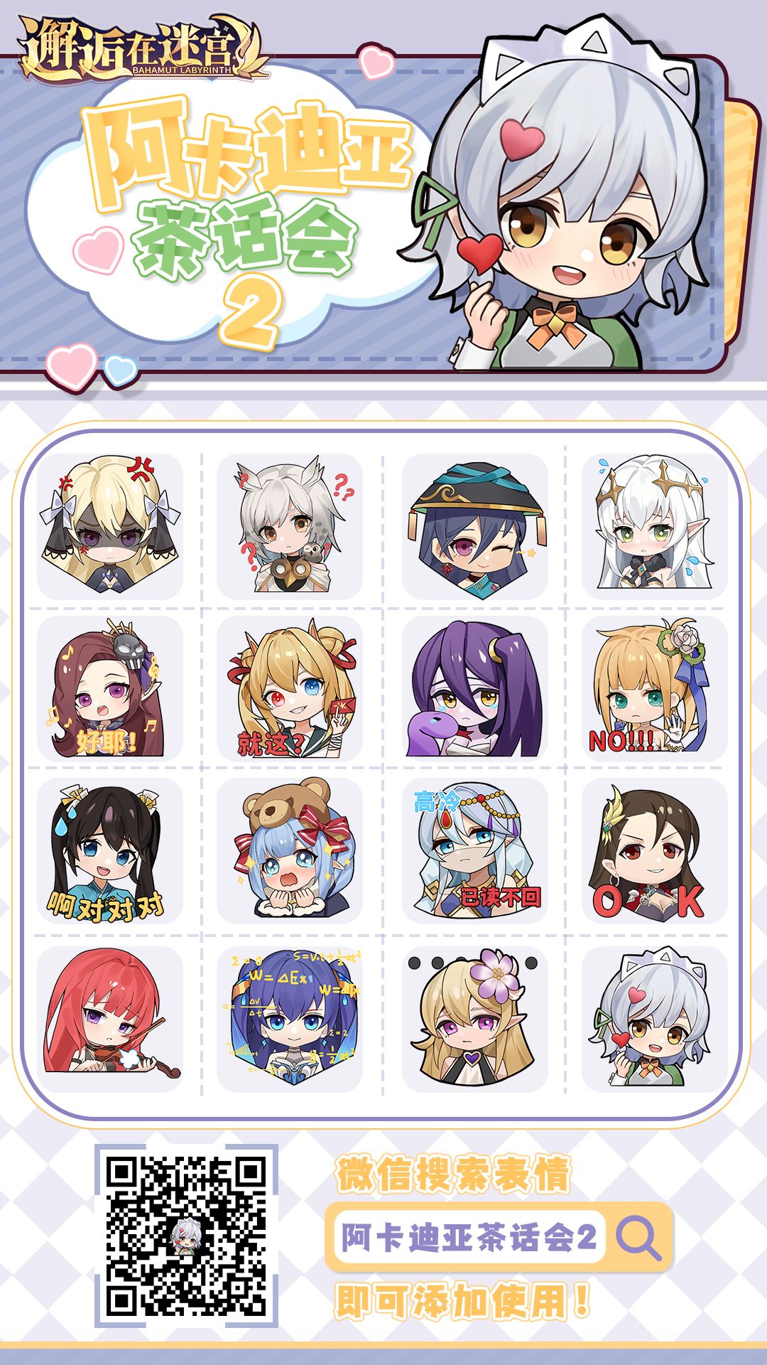 微信搜索“阿卡迪亚茶话会2”或扫描下方二维码即可获得表情>>>