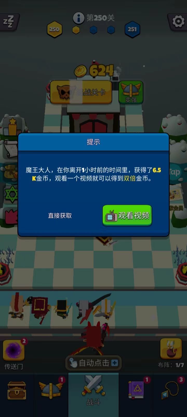 打过冰龙之后感觉电脑强度有阶梯形加强、神器皇冠也来到了7人口、但是现在只有六个英雄如果当前有7个英雄就可以一路顺利打下去的、继续离线1小时回头直奔300层(今天计划是打到350层)希望自己可以超额完成预期