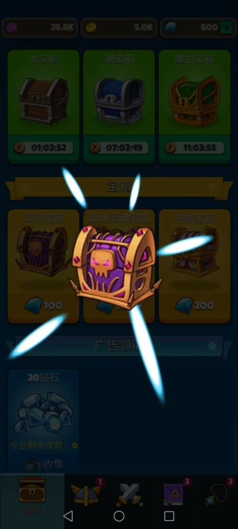 宝箱cd广告看完没有出新英雄 魔力宝箱这里运气非常好4.8K魔力币这个宝箱魔力币是随机的最高5K基本出个满箱