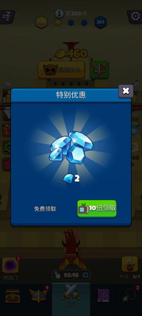 这里单独介绍以下老鹰的情况 游戏第一只老鹰拿了十倍魔力币广告、游戏最前期的第一天拿魔力币和钻石性价比几乎对等 所以直接拿了魔力币 、游戏层数变高之后老鹰广告只有拿钻石一个选项哦