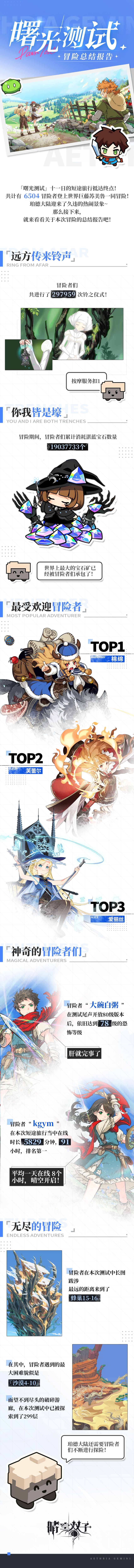距「曙光测试」结束也已有些时日!这次短暂的旅途想必也给冒险者们创造了不少的快乐与回忆!