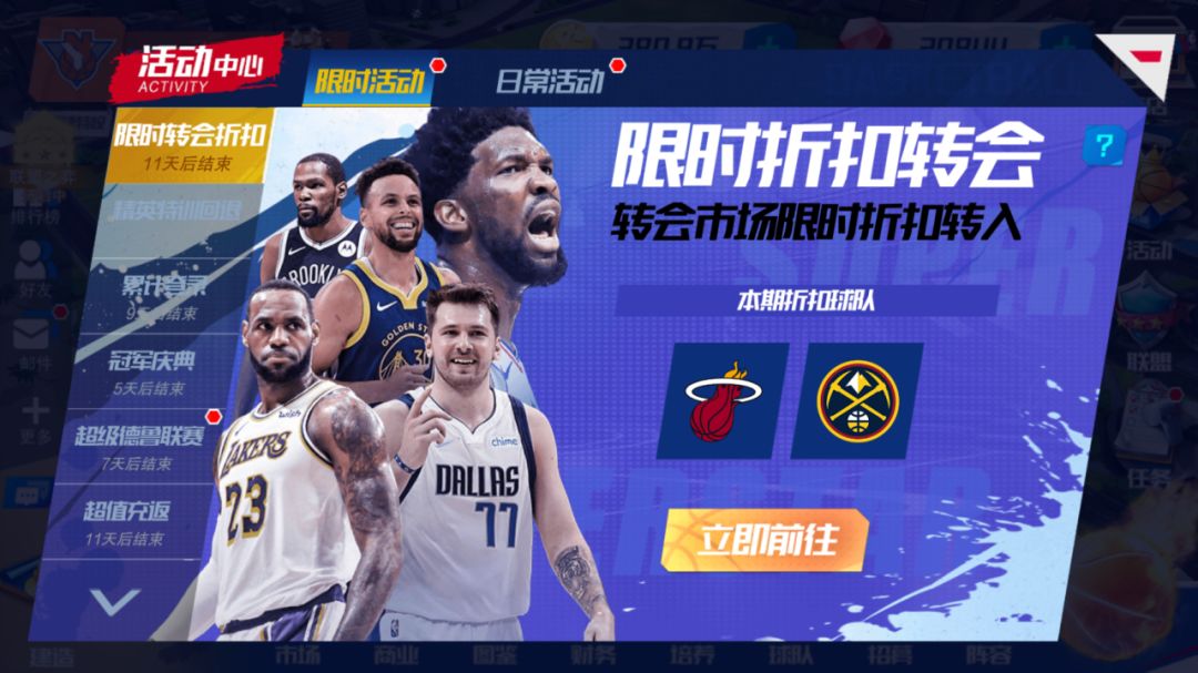 篮球转会市场转入掘金、热火队球员限时折扣,快趁现在,放肆转入想要的球员吧!