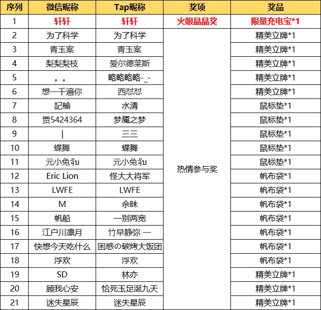 3. 活动结束后会在TapTap论坛、微信公众号内公布获奖者名单,兑奖日期为14个工作日,逾期不再发奖,用户需自行留意开奖信息,不作另外通知;