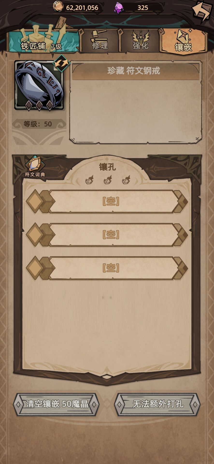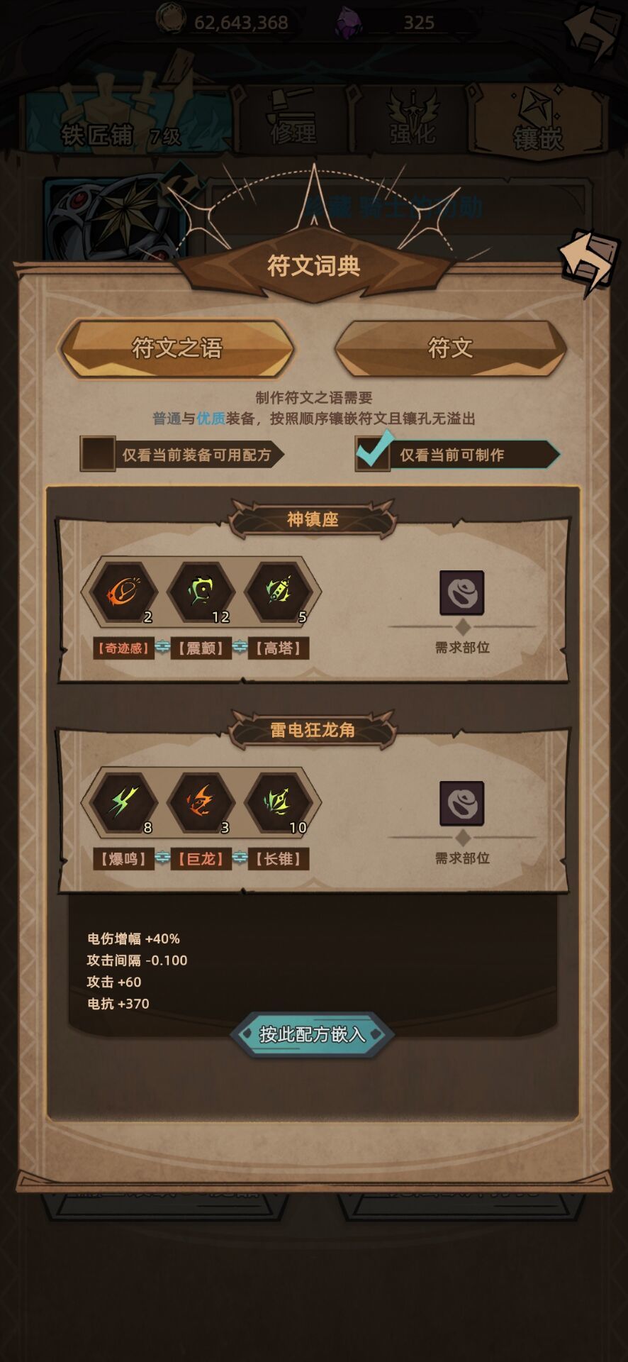 3、在满足前两个条件后,将装备放入铁匠铺进行镶嵌符文