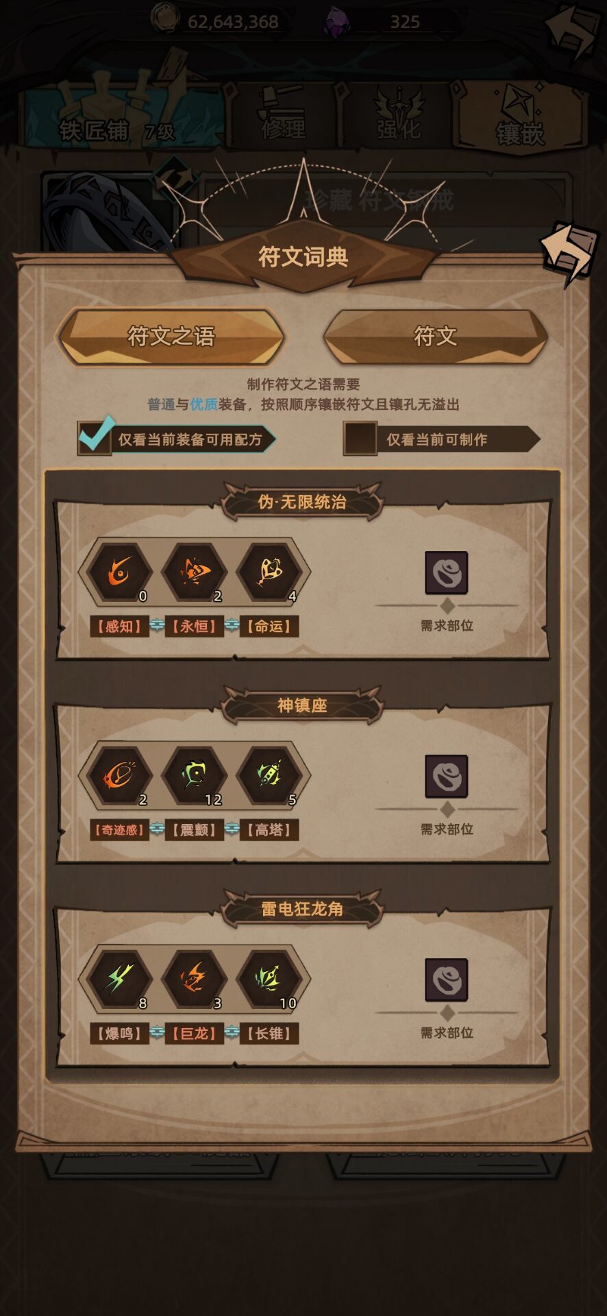 2、装备的孔数必须与制作符文之语装备所需要的符文数量相等,也就是说如果你想要打造的符文之语装备需要两个符文,但是你的装备有三个孔,那么镶嵌所需要的符文之后并不会成为符文之语装备。