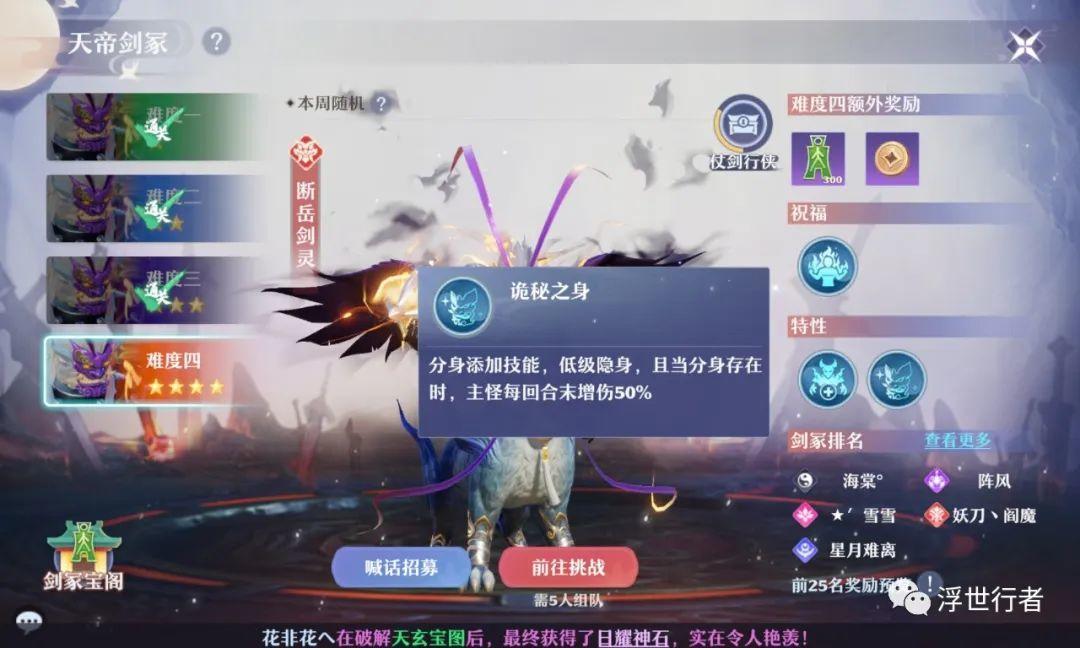 挑战玩法丨四星断岳剑灵(特性遗志+诡秘之身)通关技巧分享,至今尚无法师通关