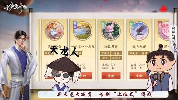 曾经肆意闯荡江湖的少侠如今已成熟稳重,生活也变得日渐忙碌。卡着时间上线做任务的设置,让少侠们苦不堪言。
