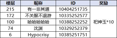 幸运奖:抽取5位幸运的司命大人送出祀神玉*10的奖励(奖励会在6月27日内发放)