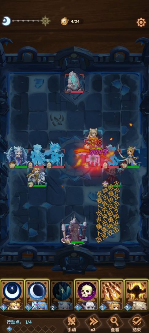 后面,炮兵boss【死灵术士】会自己过来借助【剑姬】当炮台打一下冰龙(冰龙预计会爆重生)这时所有boss都在一条线,而冰龙的大招也由于主角管理员加速cd处于可释放状态,这时候再来一个大,就是无限冻住4个人的局了