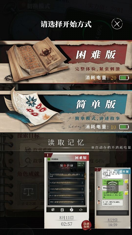 4、关于难度 进公馆不要犹豫,一定困难!你多花掉的10电其实换了更全的线索,更多的对话信息,有的成就或者结局只能在困难达成!困难不亏!(ep:杜的老日记简单模式只有一页,没屁用啊啊啊啊啊啊,困难就不一样了,困难有n页,可以直接帮你理解哪些人发生了变化!)