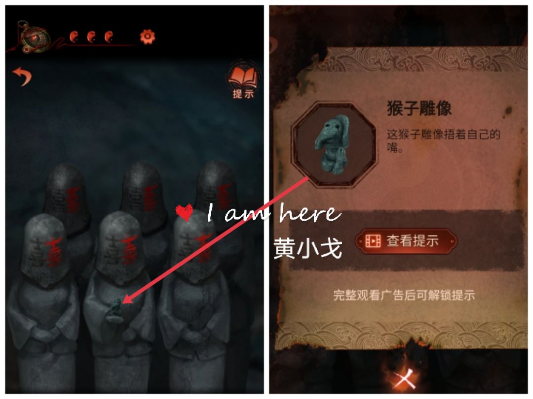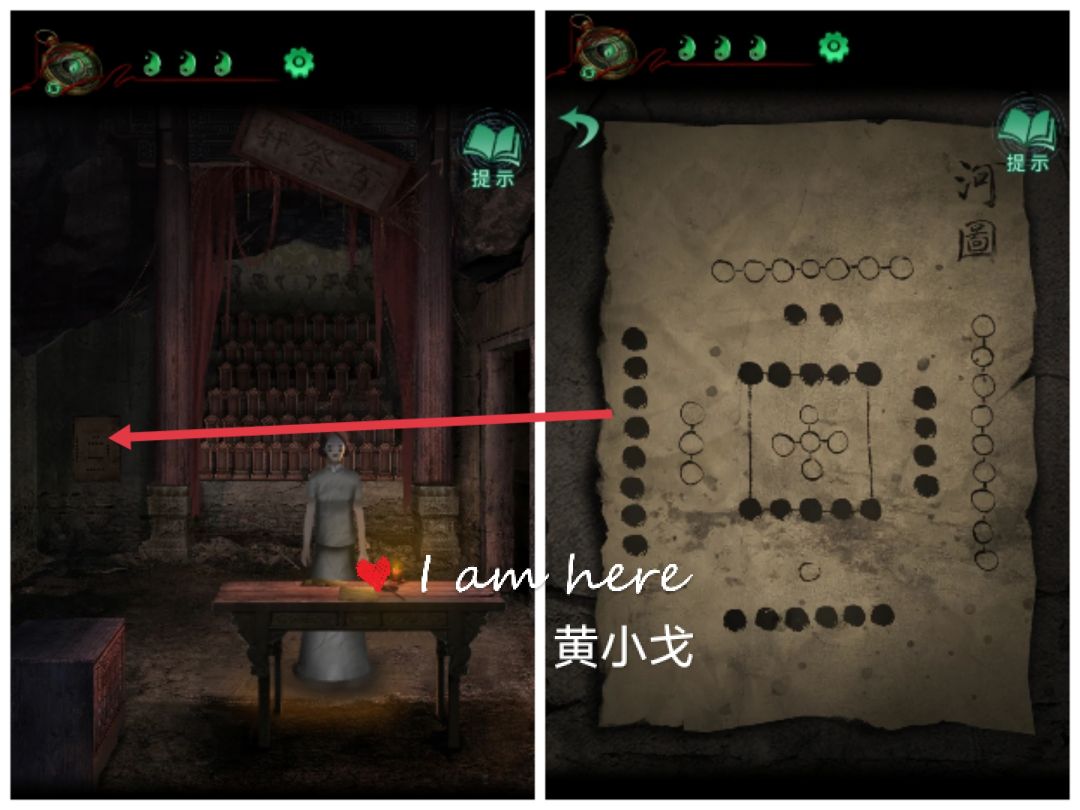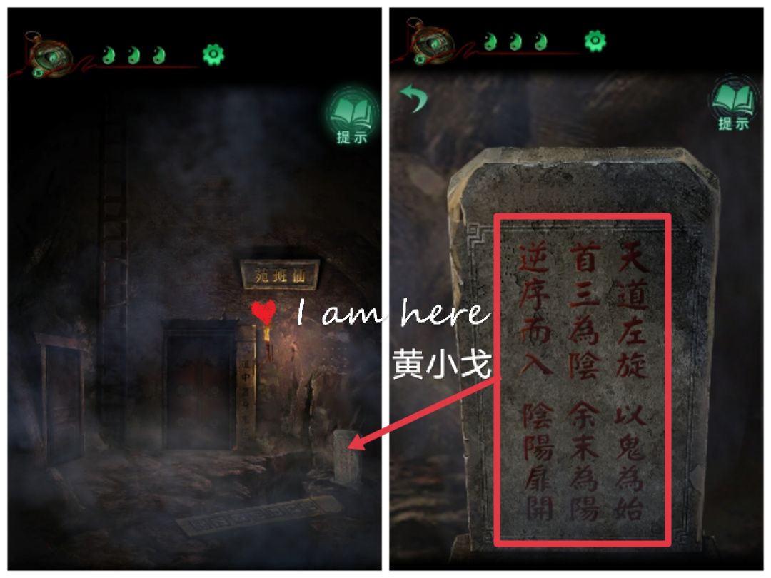 10.点击石碑,获得线索(天道左旋,以鬼为始。首三为阴,余末为阳。逆序而入,阴阳扉开)