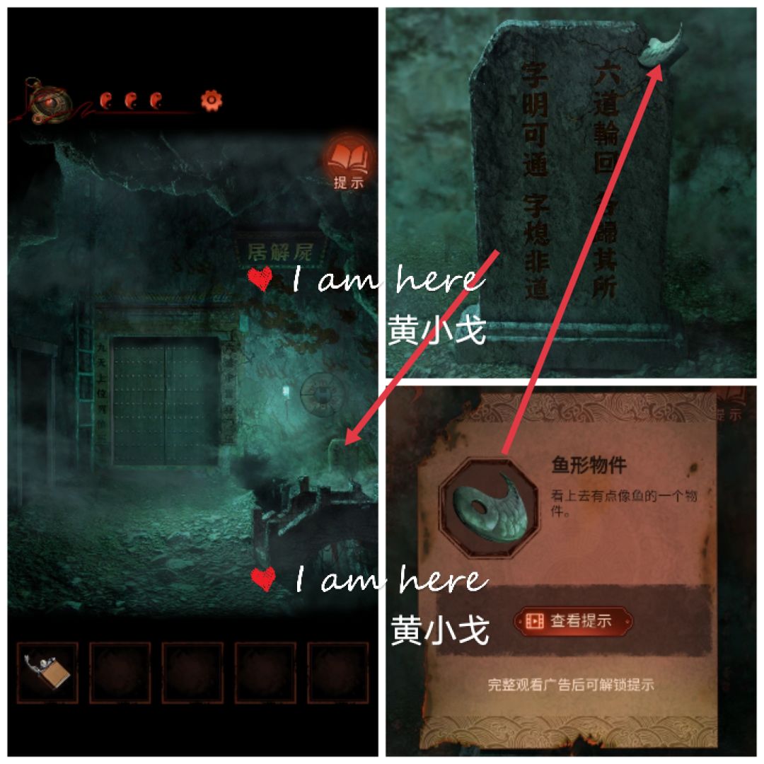 1.(女主视角)(尸解居)剧情结束,点击石碑,获得【鱼形物件】,注意文字信息(六道轮回,各归其所;字明可通,字媳非道)