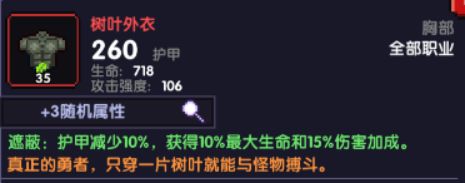 然后讨论胸甲,主要是两种选择,树叶和久战,一般默认久战,所以这边讨论一下为什么树叶不如久战。