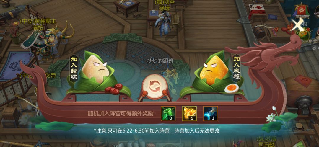 在6月22日~6月30日之间可以选择加入甜粽或者加入咸粽阵营,加入后将无法更改!