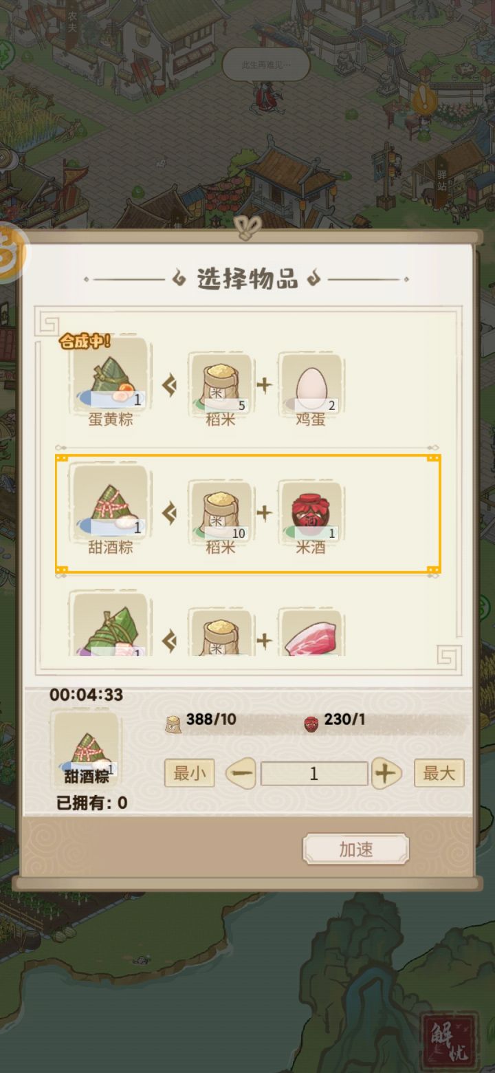左下角布局之后,点右下角建筑仓库,找到粽屋放出来。需要抓到子艾,给它办理入住后,就可以派遣进去做粽子了。粽屋在裹香粽活动里获得