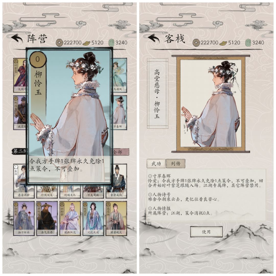 在组卡的时候也要注意阵营中的卡牌描述是简略版,少部分卡牌因受UI版面影响未能将卡牌效果全部写上(如柳怜玉、叶玄真、燕游侠、周剑林等),完整版卡牌效果介绍需前往客栈查看。(客栈中英雄的列传对原著小说世界观进行了一点补充,喜欢原著的朋友不要错过)