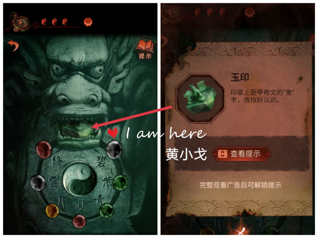 1.(女主视角)(机巧阁)点击石像上的鱼形物件,切换门