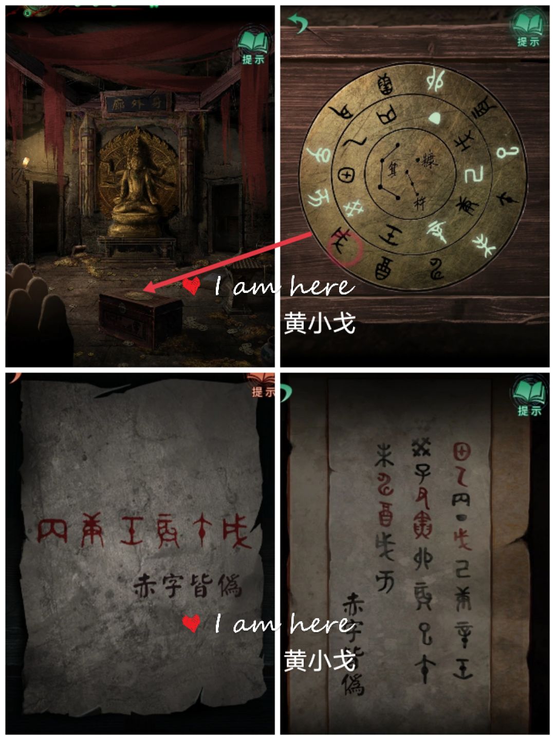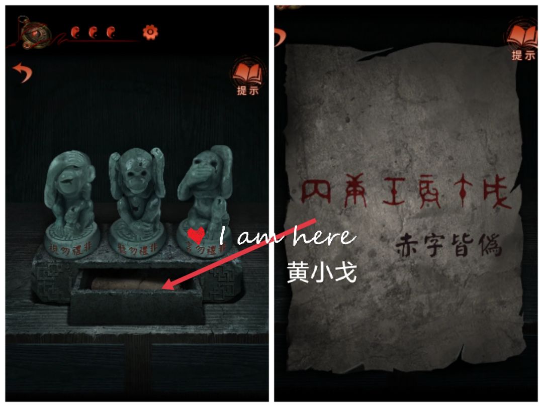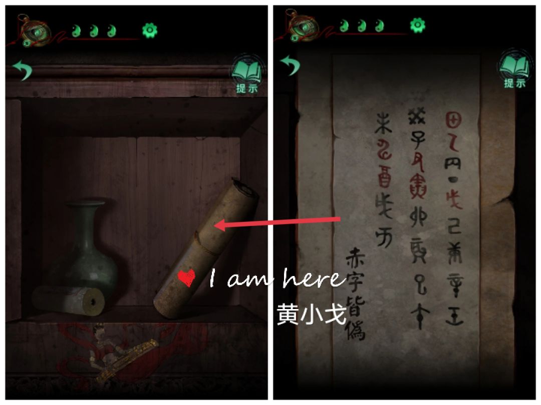 14.暗格打开,查看里面的纸条,获得线索:(赤字皆伪?和红字)