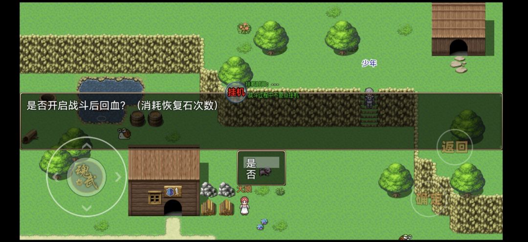 开局纠结选择什么职业可以看看截图,总共有四个职业,玩法师就选择百分5的魔法伤害,战士就选择百分5的物理伤害,骑士可以选择圣光伤害或者免伤,弓箭手就选自然伤害。现在端午节作者很良心开局小屋子送200次双倍爆率,还有坐骑,恢复石,恢复石一颗可以用200次,记得装备坐骑可以加移速,前期不建议用恢复石头,右上角可以挂机,挂机的时候点否,村里每个人都对话有的可以接任务,和狗对话选择第二个踹一脚扣血20金币少10,不能一直对话要隔段时间再对话一次,连续30次可以得到称号村霸双攻加10,和大娘对话可以接重复任务每次要10个蜗牛粘液,打蜗牛爆,和小胖对话接找包裹任务,任务物品在村子上面渔点钓鱼获得包裹,物品店可以接偷鸡蛋任务,偷10个鸡蛋,偷鸡蛋可以无限偷不过有几率触发被鸡攻击扣血10点,血量没有游戏就结束了,被攻击30次可以得到称号偷鸡贼敏捷永久加5,可以无限使用,村长接任务要5个血吻口器爆率比较低要打血蚊boss才能获得,在村子里升级到四级之后最好五级装备好可以装备的物品之后留着10个蜗牛粘液,2个礼包码 tap礼包:36471